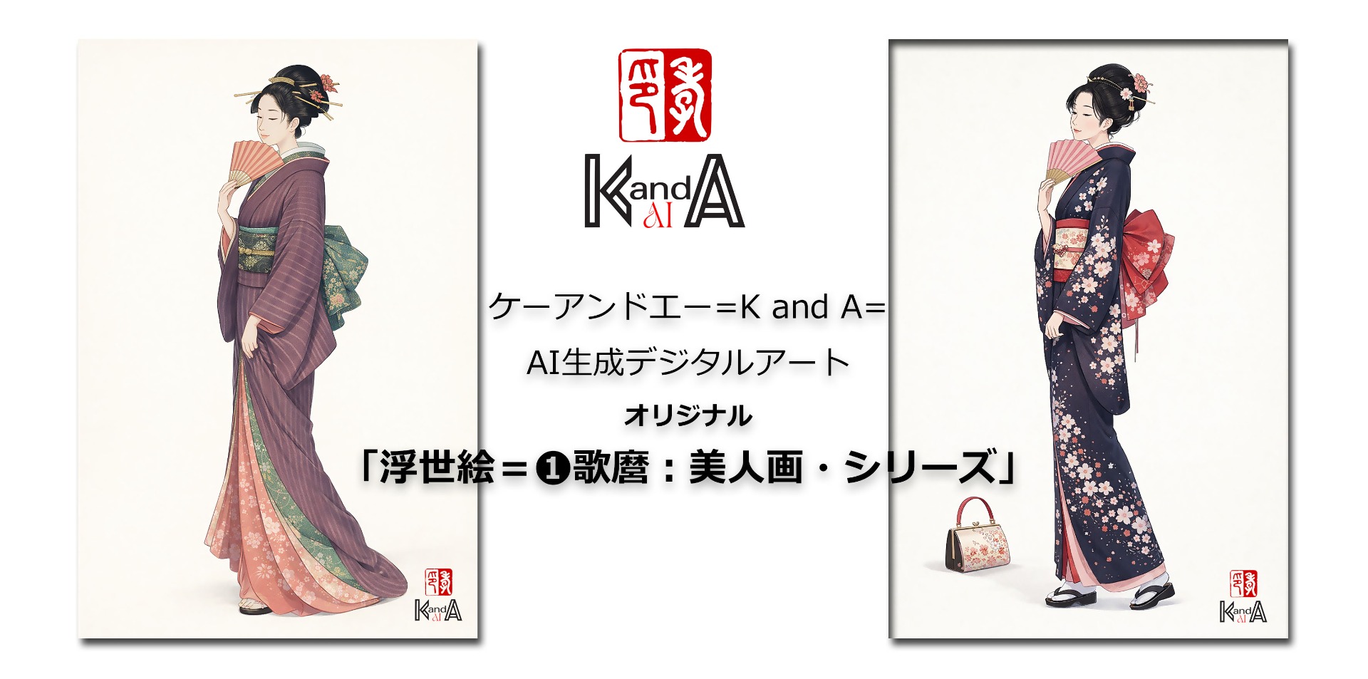 ケーアンドエー(K and A)は、日本が誇る浮世絵の巨匠たち、歌麿、北斎、広重の名作をモチーフにしたAI生成デジタルアートを制作しております。